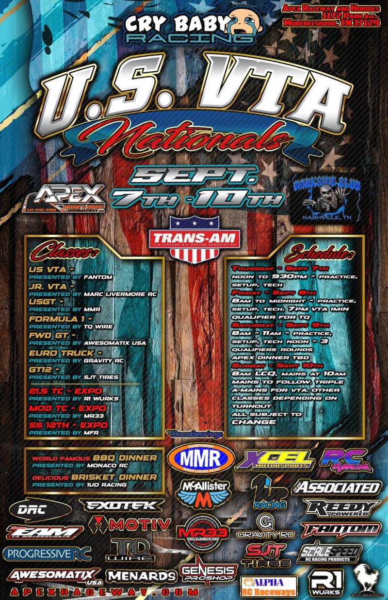 Cry Baby Racing & Darkside presents 2023 U.S.VTA Nationals at Apex Raceway and Hobbies